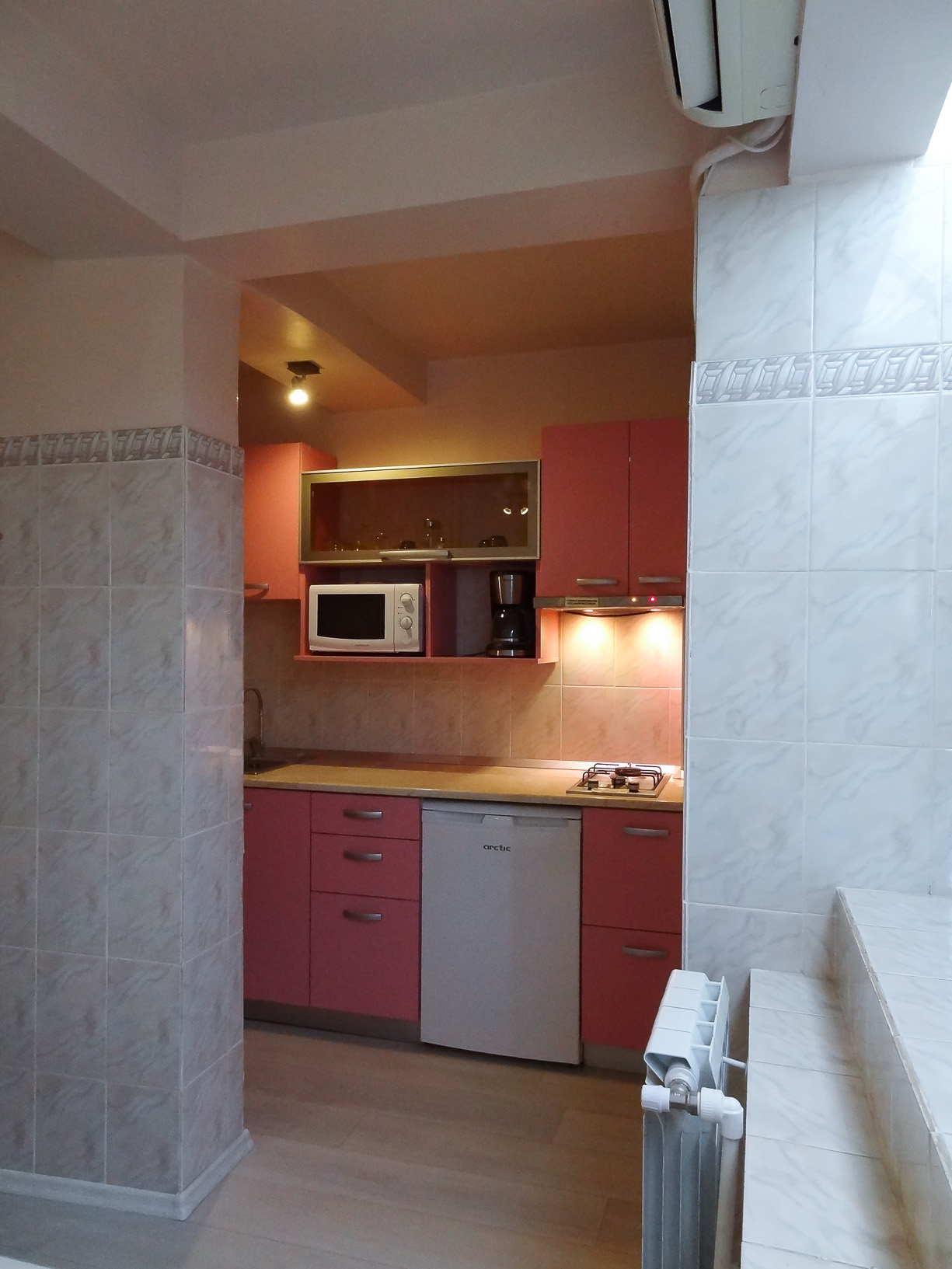 New York este aproape identic cu apartamentul 2,este situat tot la etajul 5 cu o vedere panoramica la Faleza Dunarii. In baia cu gresie si faianta neagra, in loc de cada beneficiati de dus pe colt si bideu.Camera este intima avand tapet la culoarea mobilei dupa care intrati in alta camera unde unde aveti un coltar generos si o bucatarie la fel de utilata.